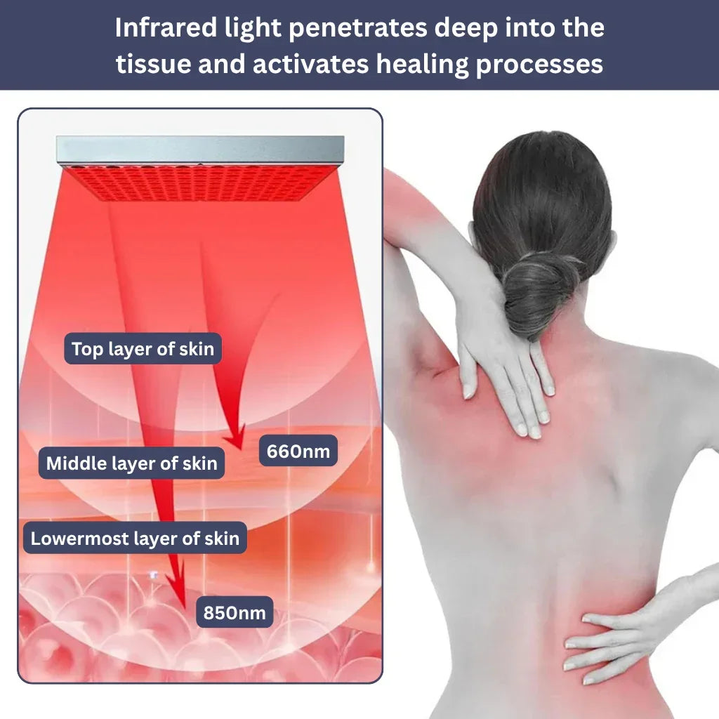 The LED Light Therapy Panel combines deep red and infrared light to penetrate deep into your tissue.