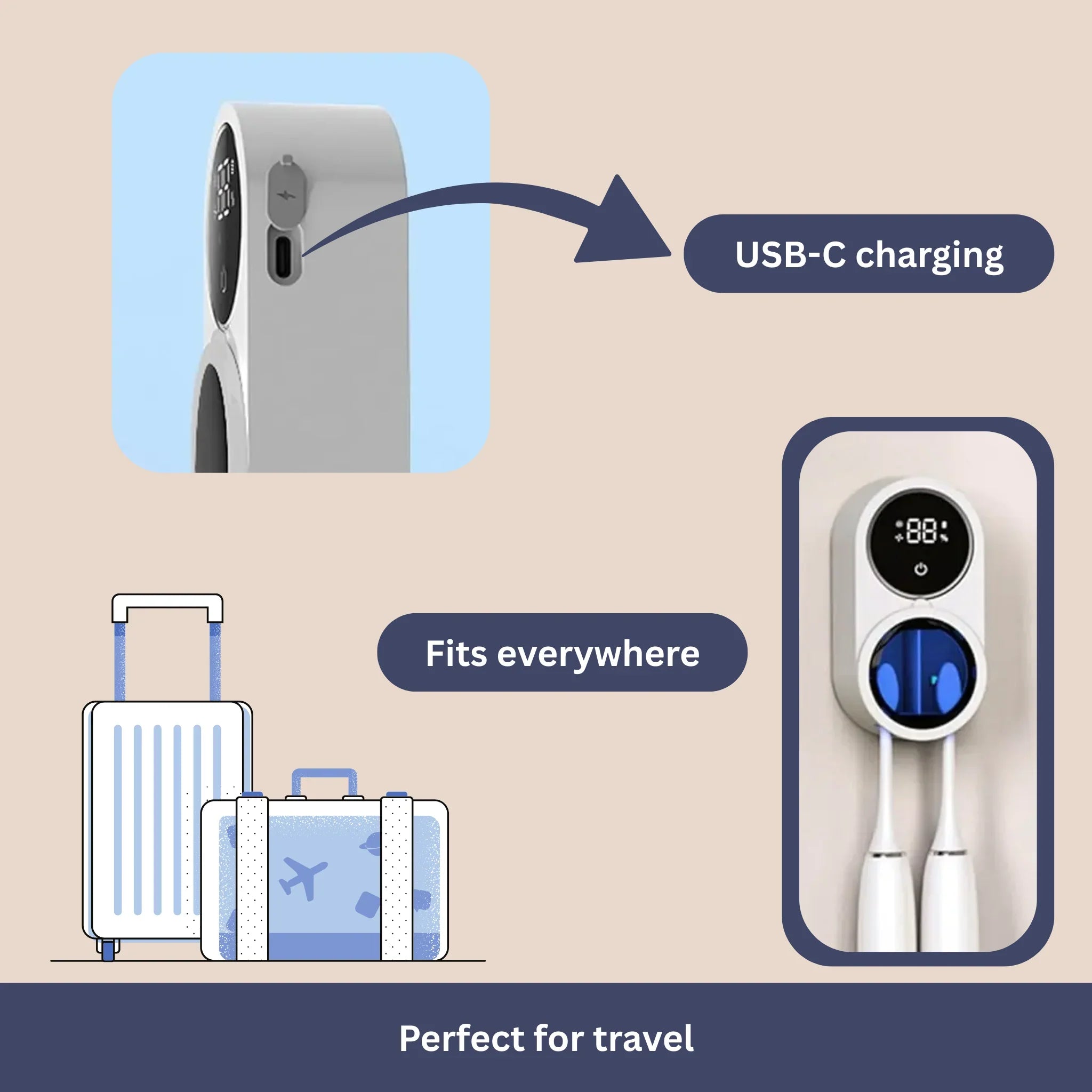 The toothbrush cleaner ensures your toothbrush is always clean and hygienic.