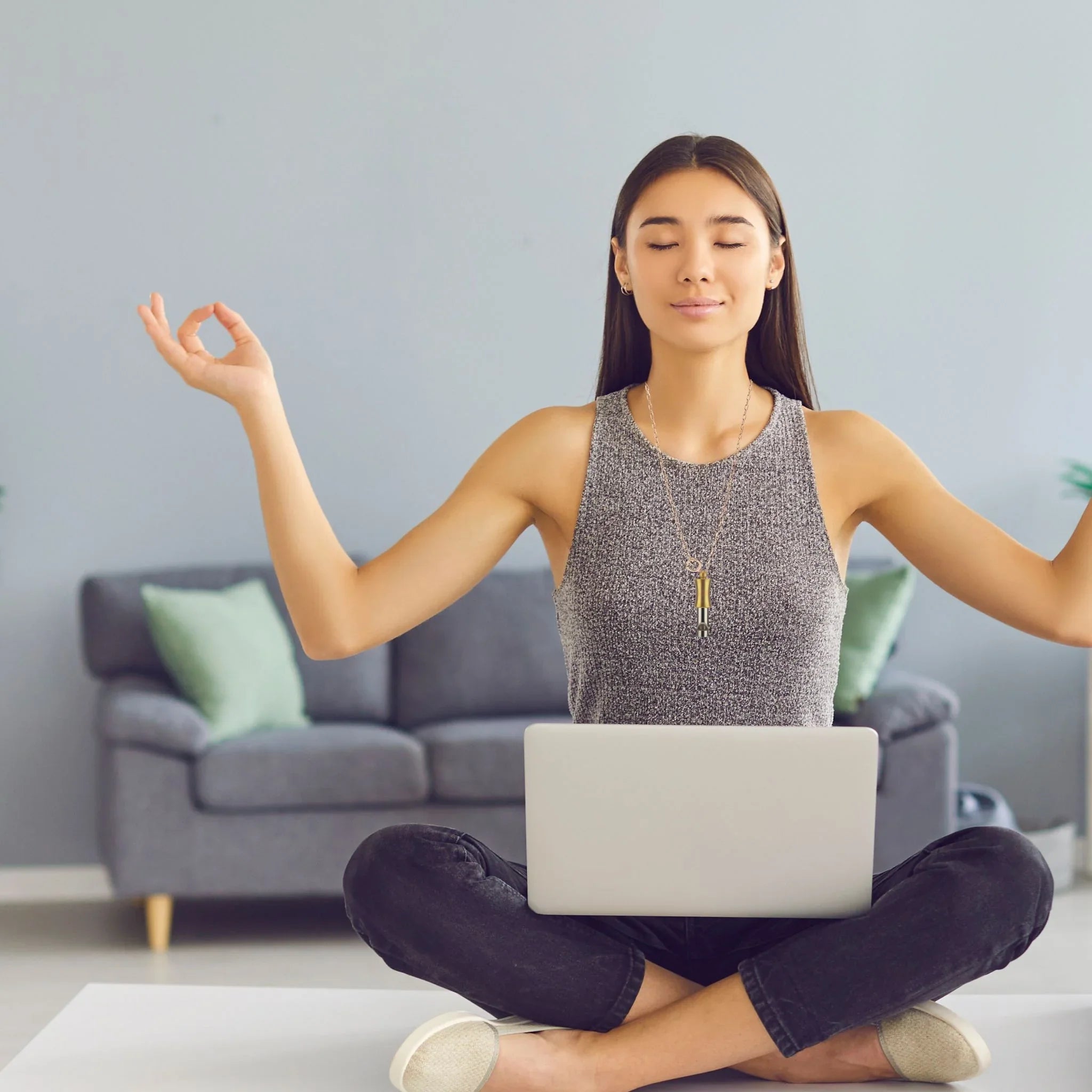 The ZenVibe breathing whistle helps you calm your nervous system and achieve a meditative effect through even and controlled breathing .